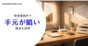 現場事務所の多くはプレハブ構造で、天井の蛍光灯がデスクの真上にないことも多く、自分の体で手元に影ができてしまいがちです。