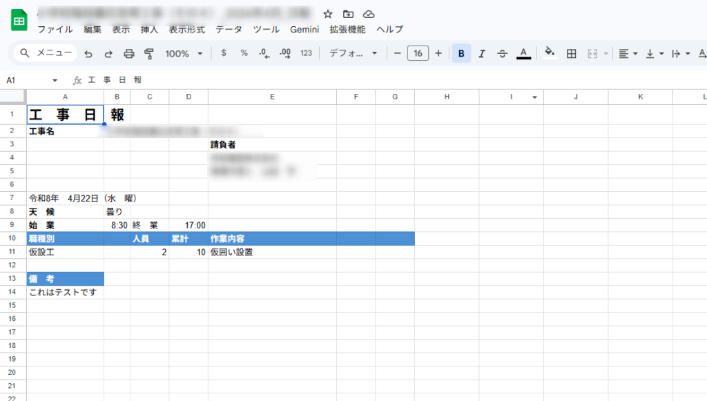 天気、人数、作業内容。それだけなのに、なぜかExcelを開くのが億劫で、後回しになることがあります。