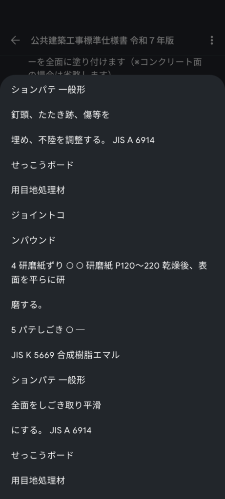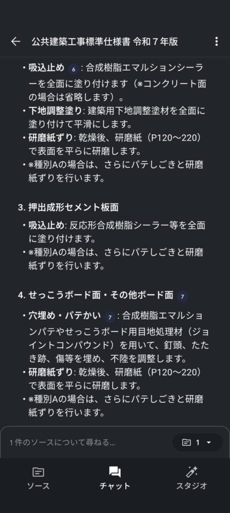 すると、下地の種類別に整理して回答してくれました。